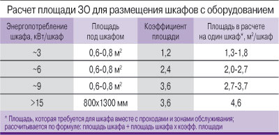 Для примерной оценки (сверху) необходимой полезной площади ЗО под размещение шкафов с оборудованием можно пользоваться соотношениями, приведенными в таблице.