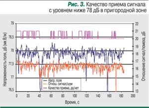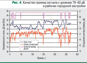 В экспериментах, проведенных в Мексике2, в местах с напряженностью поля ниже 78 дБ стационарный прием был плохим (рис. 3), но там, где напряженность поля равнялась 78–82 дБ и отношение с/п было примерно на 1 дБ выше, нарушений приема было значительно меньше (рис. 4). Это наглядное свидетельство того, насколько критична величина уровня принимаемого сигнала для цифровой системы.