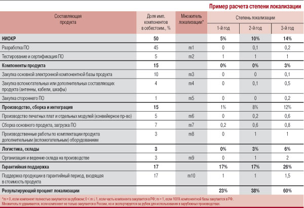 Предложенная Минпромторгом России методика определяет степень локализации на основе опыта автомобильной промышленности, вычисляя ее как отношение объема комплектующих, произведенных за рубежом, к объему комплектующих, произведенных в России. Однако такой подход не позволяет набрать за счет российских компонентов 60% стоимости продукта, необходимые для признания его отечественным. Методика не учитывает затраты на разработку ПО, а только стоимость компонентов. Между тем российские предприятия отрасли производят не более 5% комплектующих. Но самое главное – методика Минпромторга не учитывает реалии современного телекоммуникационного рынка: глобальность (мировые производители имеют центры разработки и производства в разных странах, большая часть компонентов выпускается сторонними компаниями по лицензии, ни в одной стране доля создаваемой стоимости конечного продукта не превышает 20–25%) и инновационность (стоимость ПО в современном оборудовании – не менее 50%, материалов – не более 15%).