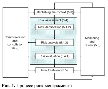 В соответствии с рекомендациями международного стандарта ISO 31000:2009 Risk management -- Principles and guidelines неотъемлемой составляющей общего процесса управления рисками организации является оценка рисков (риск-аудит) (рис. 1).