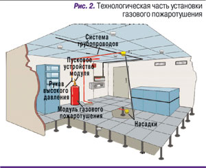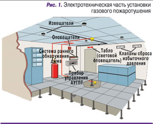 Любая установка газового пожаротушения состоит из двух частей: электротехнической и технологической.