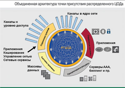 Наличие в сети оператора распределенного ЦОДа позволит, с одной стороны, сохранить централизацию формирования сервисов, с другой стороны – оптимизировать потоки данных. Часть контента и сервисов, потребляемых абонентами оператора, целесообразно размещать в ЦОДах, находящихся как можно ближе к границе сети. Это повысит качество предоставления сервиса, снизит общую задержку и пр.