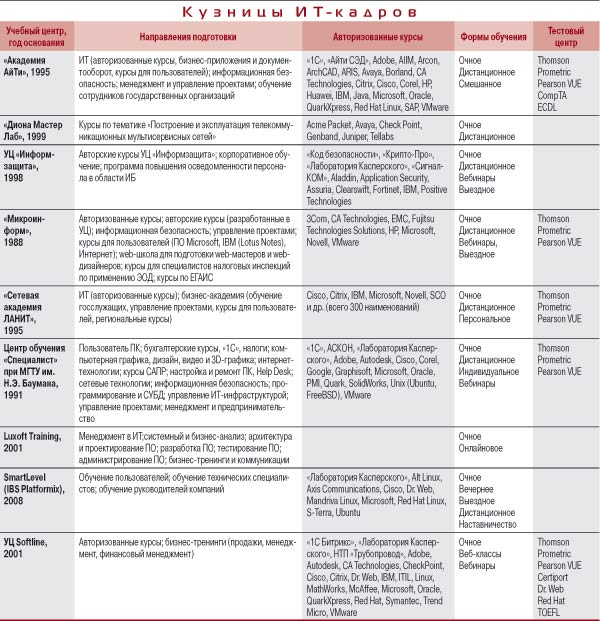 К слову, если с учебными центрами внутренние корпоративные университеты и конкурируют на поле обучения пользователей информационных систем, то за повышение квалификации ИТ-специалистов они, как правило, не берутся, поскольку обеспечить должное качество преподавания авторизованных курсов внутри компании сегодня практически невозможно.