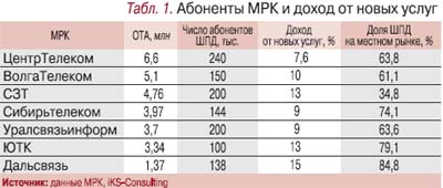 В сентябре-октябре дочерние компании ОАО «Связьинвест» представили свои финансовые и операционные показатели за первое полугодие 2007 г. по МСФО. Притом что голосовые услуги приносят МРК основную часть выручки, все они активно осваивают смежные рынки (табл. 1). В своих отчетах МРК не дают четкой структуры доходов от новых услуг, однако есть все основания полагать, что немалую их долю составляют услуги от широкополосного доступа в Интернет. Впрочем, с учетом миллионных абонентских баз этих операторов, «широкополосье» для МРК еще не один год будет оставаться основным драйвером рынка.