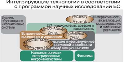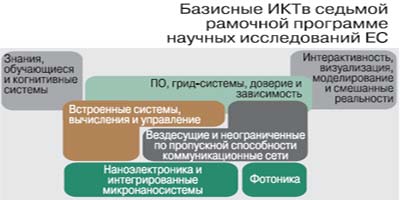 Вид на ЕвропуВ странах Европейского союза подход к формулировке программы научных исследований характеризуется системностью, комплексностью и гласностью. Так, принята уже седьмая рамочная программа научных исследований (на 2007-2012 гг.), общий бюджет которой составляет 9 млрд евро. Из этой суммы 28,5% выделяется на ИКТ, и на этом направлении определены следующие типы исследований: