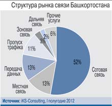 По объему доходов от услуг связи Башкортостан занимает 13-е место в России, но темпы роста доходов ниже среднероссийских – по итогам шести месяцев 2012 г. годовой прирост выручки предприятий связи в республике составил 6,5% (до 10,79 млрд руб.), а в среднем по России – 8,4%.