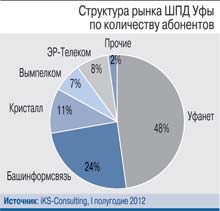 У остальных интернет-провайдеров, работающих на рынке столицы республики, размер абонентских баз на порядок меньше, чем у двух основных игроков. Третье место занимает «МТУ-Кристалл», региональный оператор КТВ, четвертое – «ЭР-Телеком», которому за год с небольшим работы на уфимском рынке удалось подключить порядка 20 тыс. абонентов. Из операторов большой тройки на рынке проводного интернет-доступа пока присутствует только «ВымпелКом».