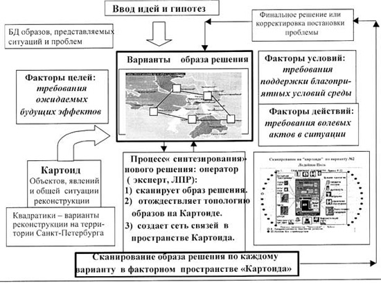 - на поле картоида осуществляются акты отождествления требований (факторов целей, условий и действий) с конкретными элементами объектов и новаций, предложенных в данном варианте,