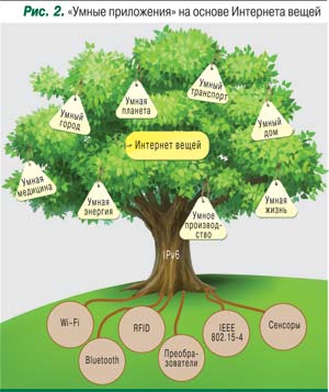 На основе интернета вещей могут быть реализованы всевозможные умные приложения в различных сферах деятельности и жизни человека (рис. 2).