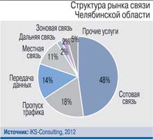 У региональных провайдеров ШПД совокупный объем доходов в 2012 г. увеличился на 14%. Уровень конкуренции в сегменте проводного интернет-доступа достаточно высок – из федеральных операторов на местном рынке, кроме традиционного «Ростелекома», развивают сети ШПД «ЭР-Телеком», «ВымпелКом», МТС и ТТК. «ЭР-Телеком» начал работать в Челябинске в 2006 г. и довольно быстро завоевал значимую долю челябинского рынка. С 2011 г. компания также представлена в Магнитогорске. МТС предлагает услуги скоростного интернет-доступа в Челябинске с 2011 г. на базе приобретенного оператора «Мультинекс». Проводной интернет от «Билайна» появился в Челябинске в начале 2012 г. Активно строит сети в Челябинской области и ТТК, сегодня оператор присутствует в Челябинске, Кыштыме и Златоусте.