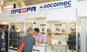 Эксклюзивный дистрибьютор французско-итальянского производителя Socomec UPS российская компания «Преора» демонстрировала линейку ИБП Green Power 2.0, предназначенных для дата-центров, телекоммуникационных систем и ИТ-инфраструктур. Их основное отличие – максимально возможный (т.е. равный 1) входной коэффициент мощности. За последний год линейка пополнилась новой старшей моделью, и теперь мощность ИБП Green Power 2.0 варьируется в диапазоне от 10 до 500 кВА. Их КПД в режиме двойного преобразования составляет 96%, а в «экорежиме» доходит до 99%, что вместе с «единичным» коэффициентом мощности позволяет существенно снизить затраты на электроэнергию. Причем младшие модели этой серии допускают установку в параллель до шести, а старшие – до восьми ИБП, т.е. суммарная мощность системы бесперебойного питания может достигать 4 МВт. Ну а для тех заказчиков, которые планируют постепенно наращивать мощность своих систем, предназначен модульный ИБП Green Power Modulys: он «растягивается» от 20 до 360 кВА с шагом 20 кВА.