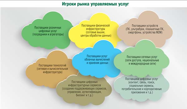 Облачные решения и виртуализация поднимают управляемые услуги на новый уровень, на котором практически всё, что ранее поставлялось в виде программного обеспечения или «железа», делается доступным в виде услуги. Вместе с тем управляемые услуги могут быть и вполне материальными, скажем, предоставление в аренду сотовых вышек или инфраструктуры дата-центра (см. рисунок). И, кроме того, услуги могут комбинироваться произвольным образом.