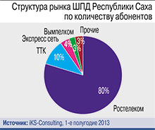 Рынок местной телефонии Якутии также не может похвастаться большим количеством игроков. Всего в республике насчитывается порядка 153 тыс. квартирных абонентов, из них 97% обслуживает «Ростелеком».