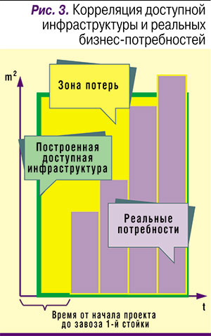 Создание же собственной корпоративной инфраструктуры ЦОДа должно четко коррелировать со сроками закупки техники и запуском требуемых бизнес-задач. Стройка «на перспективу» также будет приводить к потере экономического эффекта из-за простоя построенной и уже доступной инфраструктуры, на которую потрачены немалые средства.