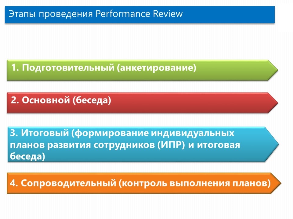Сопроводительный этап – отслеживание динамики выполнения плана. Все мы стремимся к тому, чтобы подчиненный выполнил задачи, а руководитель оказался доволен. У сотрудников есть возможность инициировать внесение изменений в итоговый план, аргументированно представляя свои предложения непосредственному руководителю в течение всего периода до начала следующего цикла процедуры Performance Review.