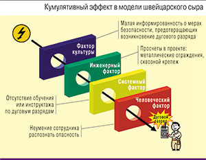 Так, дуговой разряд может возникнуть, если система содержит упущения на культурном, инженерном, системном и человеческом уровне (см. рисунок).