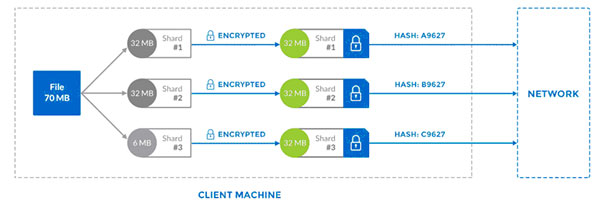 Таким образом, в сети блокчейна хранятся хэши файлов и информация о месте их нахождения, причем никто, кроме хозяина не может восстановить зашифрованный и распределенный по сети файл.