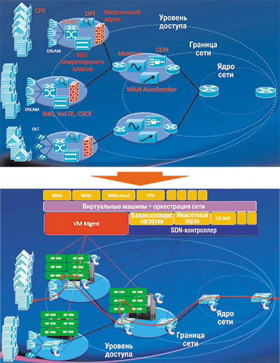 | Рис. 2. Виртуализация узлов сети доступа и агрегации |