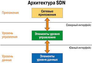- облачным уровнем С (cloud), содержащим как минимум виртуализованные функции сетевого оборудования (VNF) и приложения SDN-управления.