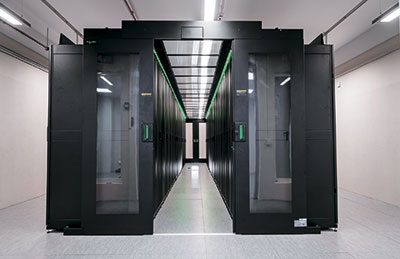 В ЦОДе два машинных зала – для стандартного (28 стоек) и нестандартного (восемь стоек) оборудования. Мощность его рассчитана на 250 кВт ИТ-нагрузки и 250 кВт нагрузки инженерных систем. Для обеспечения бесперебойного питания установлено два ИБП Symmetra PX каждый мощностью по 500 кВт, которые способны обеспечить нагрузку электропитанием в течение 10–15 мин – этого более чем достаточно для запуска ДГУ. Отметим, что Symmetra PX имеет высокий КПД – 95,6% (при нагрузке от 40 до 100%), что существенно сокращает расходы на электропитание самого ИБП и системы охлаждения.