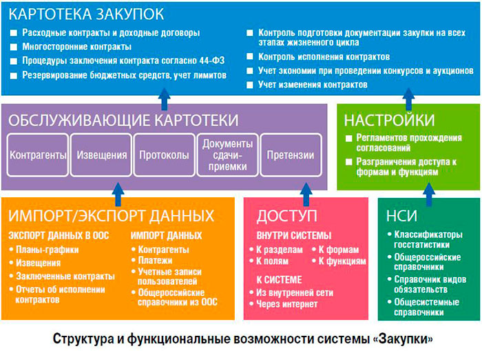 Система «Закупки» обеспечивает автоматизацию процессов подготовки и актуализации планов закупок, согласования и утверждения документации для размещения заказа и получения извещений о нем. В ней реализован мониторинг как исполнения контрактов, так и ведомственного закупочного процесса в целом. Одно из главных преимуществ системы, которая разрабатывалась с использованием специализированных справочников и классификаторов, в том, что конечный пользователь может самостоятельно ее настроить.