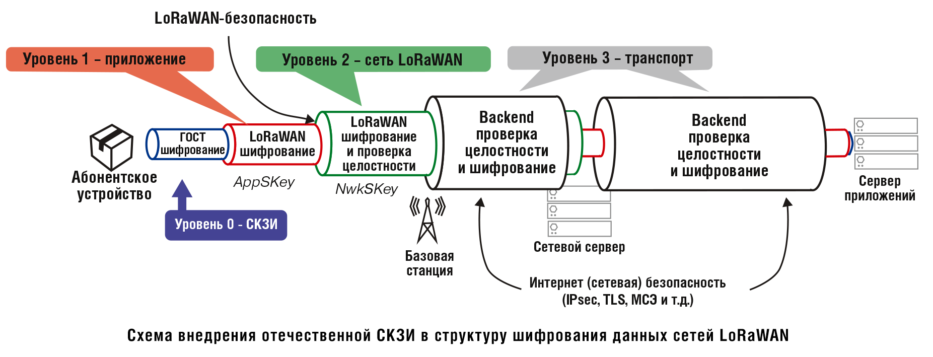 18.07.2016), по требованию заказчика используемые в стандарте LoRaWAN уровни шифрования AES-128 могут быть дополнены одним из стандартизованных в России алгоритмов, входящих в семейство ГОСТ Р 34.10-2012 и ГОСТ Р 34.11-2012, или алгоритмом «Кузнечик» (согласно ГОСТ Р 34.12-2015 и ГОСТ Р 34.13-2015).