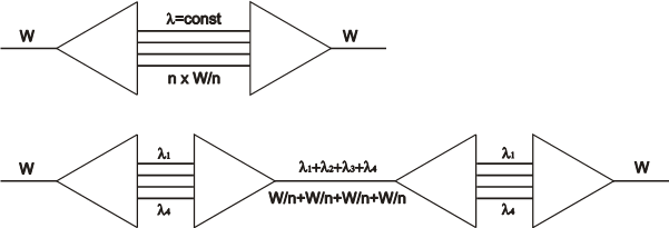 В схематической форме идея первых двух вариантов показана на рис. 1. Модовое уплотнение по структурной схеме отличается от спектрального только тем, что использует разные моды оптической несущей одной длины волны.