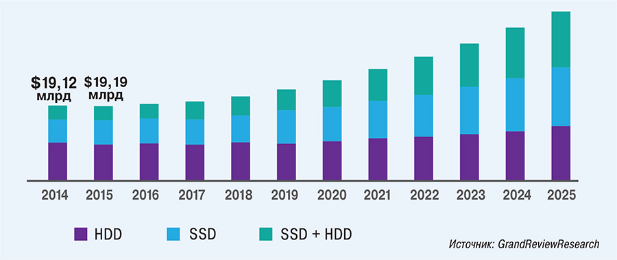 Рынок систем хранения следующего поколения, по данным Mordor Intelligence, достиг в 2018 г. отметки $21,55 млрд и вырастет к 2024 г. до $40,8 млрд. Среднегодовой рост составит 11,4%.