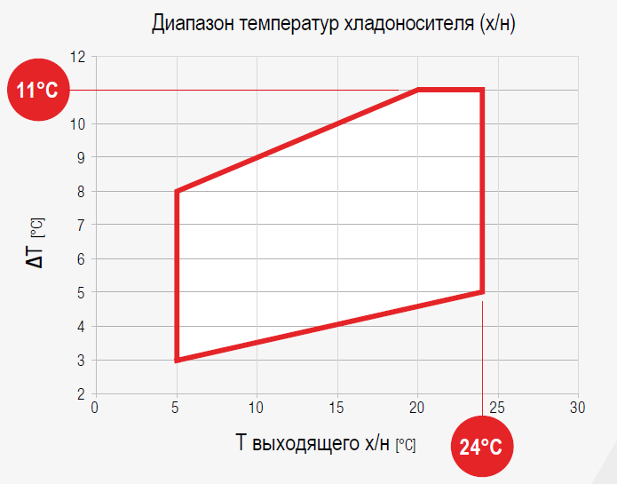 Рис. 2. Допустимый рабочий диапазон температур хладоносителя