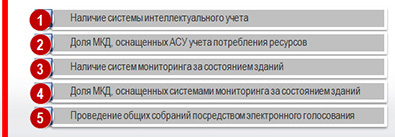Методика расчета «IQ» городов, утвержденная приказом Минстроя России, закрепила пять индикаторов, которые определяют уровень «ума» ЖКХ (рис. 2).
