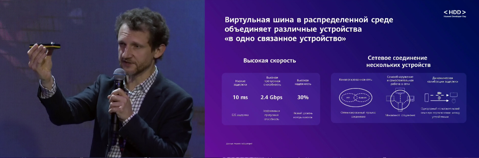 Виртуальная шина в распределенной среде объединяет различные устройства в одно «связанное устройство». Операционная система, как всегда, связывает приложения с аппаратной частью, но в данном случае аппаратной частью становится «связанное устройство», т.е. распределенная ОС разбрасывает по устройствам фрагменты выполняемых приложений. Используется конвергентная сеть, опирающаяся одновременно на Bluetooth- и Wi-Fi-каналы. Экосистема устройств обладает функциями самообнаружения, причем для работы ОС необязательно использовать устройства Huawei.