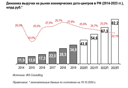 Анализируя факторы положительного влияния пандемии на рынок, эксперты iKS-Consulting отмечают, что социальные и политические ограничения (закрытие школ, ограничения передвижения, закрытие бизнесов в сфере обслуживания и др.) стали мощным стимулом для перехода на дистанционные (цифровые) форматы ведения бизнеса. Это способствовало развитию систем удаленного взаимодействия в бизнесе, государственной и частной сферах, что определило потребность в удаленном доступе к корпоративной почте, корпоративным базам данных, в использовании различных онлайн-инструментов коммуникации и ведения бизнеса (для проведения конференций и совещаний онлайн с аудио-, видеосвязью и инструментами совместной работы над документами), в организации виртуальных рабочих мест сотрудников, а также в применении инструментов информационной безопасности. Все эти технологии требуют значительных вычислительных ресурсов, которым, в свою очередь, нужна физическая инфраструктура ЦОДа.