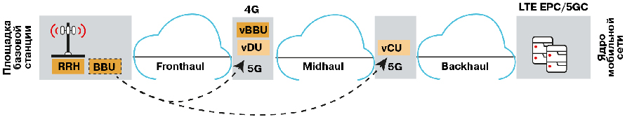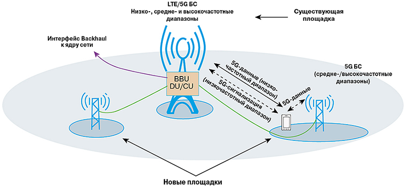 В архитектуре RAN сетей 5G можно выделить два типа площадок базовых станций (рис. 3):