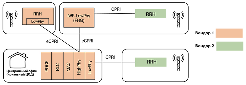 Широкое использование интерфейса CPRI позволяет разорвать моновендорность целевой архитектуры 5G RAN (рис. 5) и внедрять решения новых производителей при гарантии полноты и качества использования любой функциональности RAN.