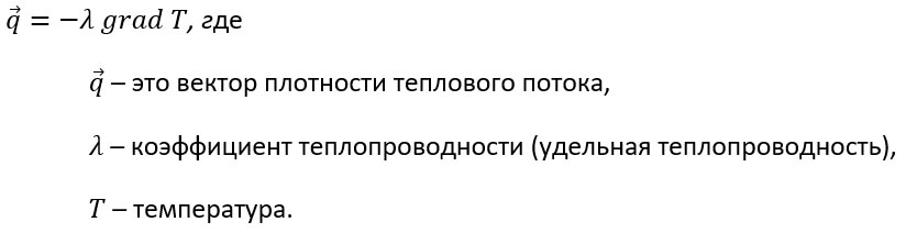 Минус в правой части показывает, что тепловой поток направлен противоположно вектору T (т.е. в сторону скорейшего убывания температуры).