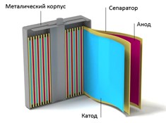 Рис. 1. Слоистая конструкция литий-ионных АКБ