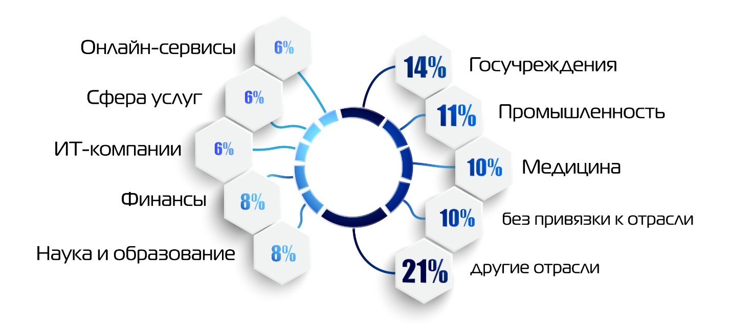 По данным Positive Technologies, в топ-3 сферы, подвергшиеся наиболее сильным кибератакам во время пандемии, вошли госучреждения, промышленность и медицина.