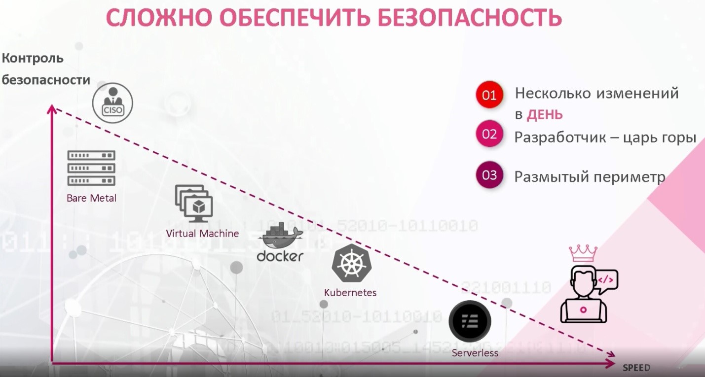 Шифровальщики – самая распространенная, но далеко не единственная угроза. Нашумевшая атака на компанию SolarWinds была реализована с использованием уязвимостей в процессе создания обновлений ПО. «Разработчики все больше влияют на процесс развертывания новых версий рабочих систем, так как бизнесу важно реализовать новую функцию как можно быстрее», – отметил консультант по информационной безопасности компании Check Point Валерий Денисов. Однако о безопасности при этом часто забывают, хотя уязвимость новых облачных решений только растет. На смену локальным решениям с bare metal, защищенность которых обеспечивала классическими методами ИБ-служба предприятия, приходят более эффективные, но и более уязвимые виртуальные машины, контейнеры и бессерверные приложения, работающие в условиях постоянно размывающегося периметра безопасности.