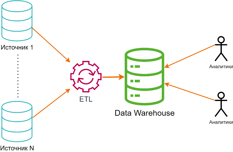 Рис. 1. Упрощенная схема сбора данных в КХД (Data Warehouse)