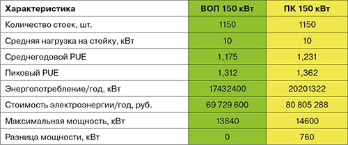 Табл. 1. Сравнение ПК и ВОП при одинаковых температурах в машзале