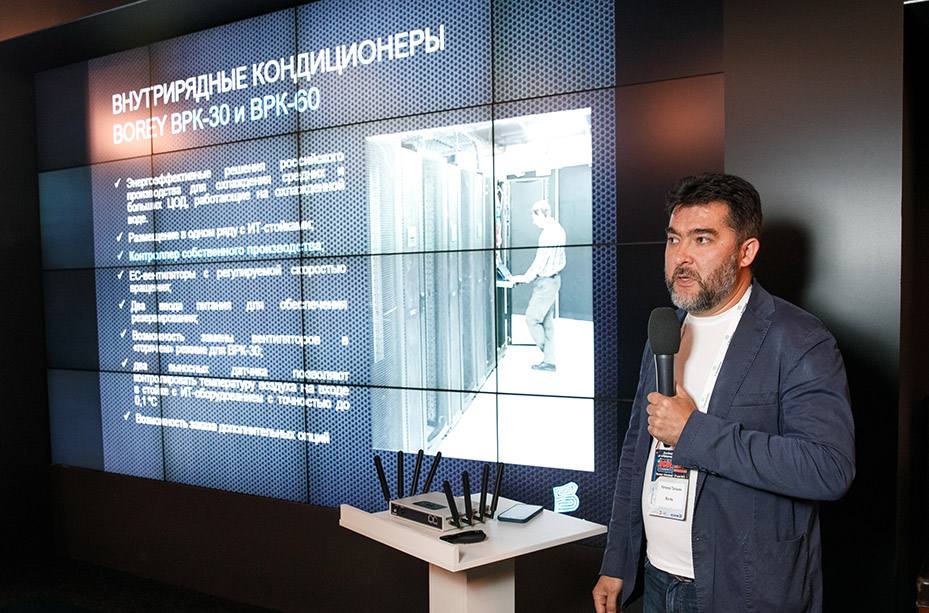 «Сегодня (27 мая на DCDE-2021. – Прим. Ред.) мы презентуем наш мини-ЦОД», - объявил акционер компании BOREY Ратмир Трошин. Мини-ЦОД оборудован системой прецизионного кондиционирования с фрикулингом, что позволяет отводить от 3 (модель BMD-3) до 10 кВт (BMD-10) тепла, выделяемого ИТ-оборудованием. Особенность – охлаждение реализовано на воде. Причем это герметичный шкаф, в котором отсутствуют дополнительные вентиляторы - работают только вентиляторы серверов, которые гонят воздух по замкнутому контуру, передавая тепло теплообменнику. «Аналогов в России и в мире нет. Мы подали патент на безвентиляторный принцип охлаждения в Европе и ждем его одобрения», - пояснил Ратмир Трошин.