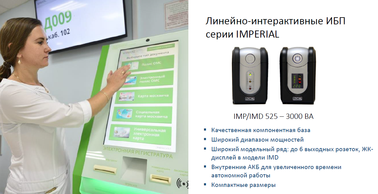 Примеры ИБП для защиты регистратуры, системы «электронная очередь»