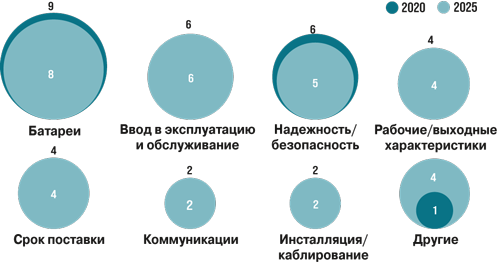 Наиболее распространенные жалобы на АКБ сегодня связаны с необходимостью их частого технического обслуживания, готовностью и работоспособностью (несмотря на заявления производителей). Отсутствие коммерчески доступных средств интеграции батарей также является проблемой для некоторых респондентов.