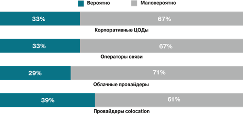 Выводы основаны на интервью с представителями 21 оператора ЦОДов (коммерческих, т.е. предоставляющих услуги colocation, облачных, телекоммуникационных и корпоративных), восьми компаний, занимающихся обслуживанием ЦОДов и инженерными системами, а также с восемью консультантами Uptime Institute. В основном они касаются крупных ЦОДов с мощностью, выделенной для ИТ-оборудования, не менее 1 МВт (средняя мощность объектов в нашем исследовании – около 65 МВт). Для небольших периферийных (edge-) ЦОДов выводы могут быть иными.