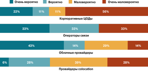 Похоже, что по крайней мере в следующие несколько лет для большинства групп наших респондентов опасения заказчиков будут перевешивать все преимущества распределенной архитектуры ИБП. Этот подход останется предпочтительным вариантом для относительно небольшого числа крупных операторов, в основном управляющих облачными ЦОДами.