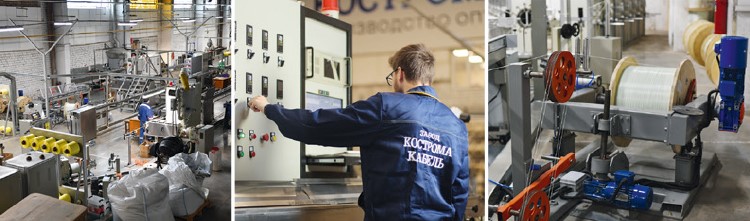 Собственное производство кабелей, в том числе из отечественного волокна (АО «Оптиковолоконные Системы», Саранск) осуществляется на заводе «КОСТРОМАКАБЕЛЬ». Наличие собственного кабельного производства дает множество плюсов: стабильность качества, доступность продукции, широкий ассортимент и высокая скорость поставки. Кабель используется как в обычных СКС, так и в многоволоконных решениях на базе разъемов MTP/MPO.