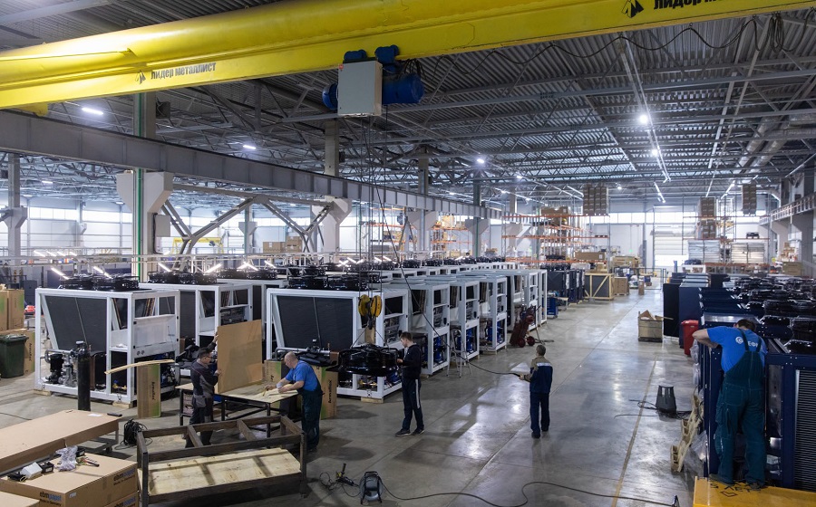 Один из них – завод «Рефкул» (рис. 5), открытый в 2019 г. в особой экономической зоне в Калужской области. Предприятие выпускает широкий спектр оборудования: шкафные прецизионные кондиционеры (от небольших устройств до аппаратов мощностью 300 кВт), межрядные фреоновые и водяные кондиционеры, чиллеры с фрикулингом (от 5 до 1500 кВт). Этот завод входит в группу компаний «Термокул», которая свой первый чиллер произвела еще в конце прошлого века.