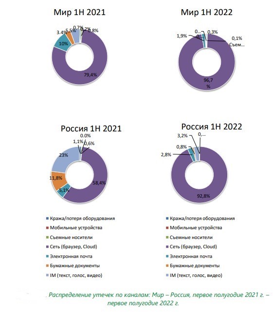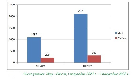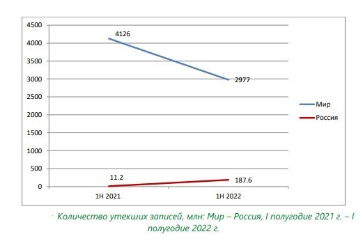 Да, количество утечек выросло сильно, но, если учесть геополитическую ситуацию и то, что Россия стала самой атакуемой страной, все не так плохо. Особенно по сравнению с ситуацией в мире, где, по данным исследования, по сравнению с первым полугодием 2021 г. количество утечек увеличилось почти вдвое.