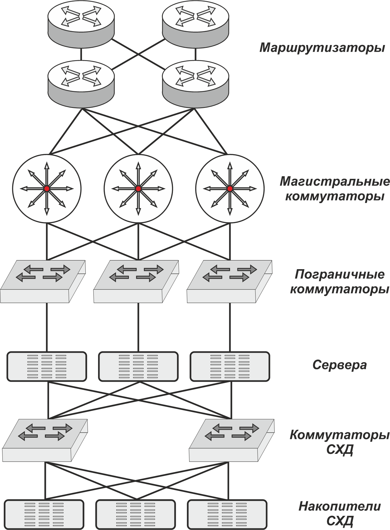 Рис. 1. Классическая схема информационной сети крупных ЦОДов