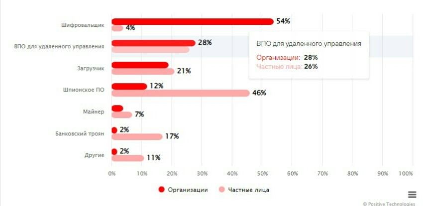 Рис. 2. Типы вредоносного ПО (доля атак с использованием ВПО)